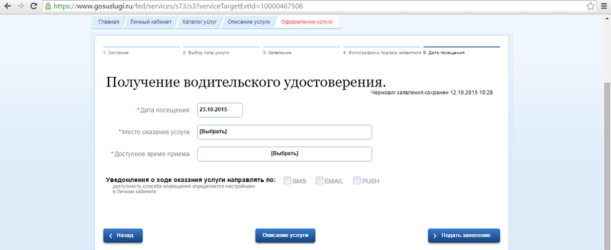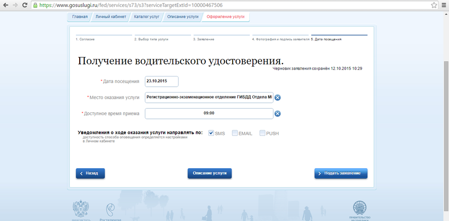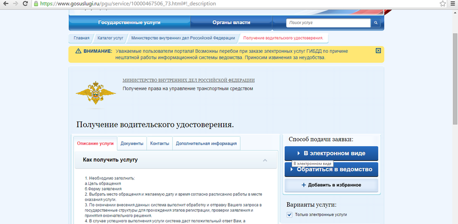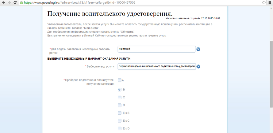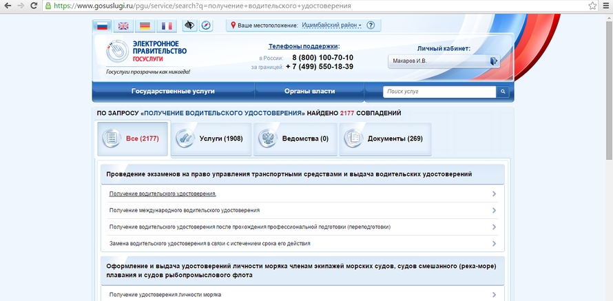 Нажимаем "Получение водительского удостоверения"